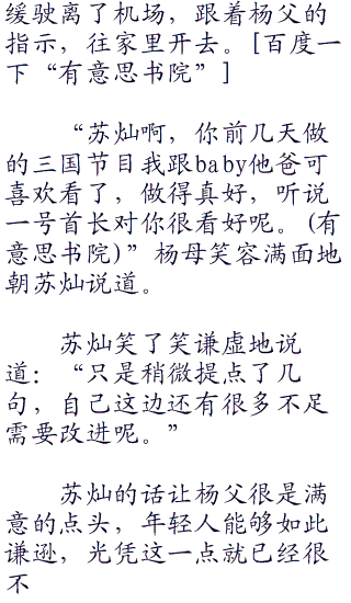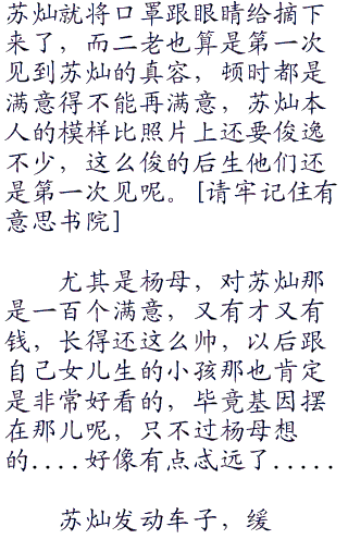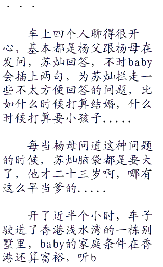 苏灿拿着钥匙上了驾驶座,杨父坐在副驾驶,杨母跟baby坐在后排。