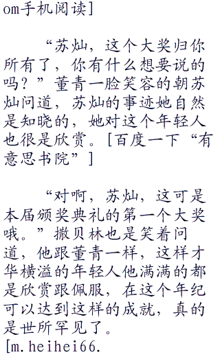 胡一菲笑着点点头,赞同道:“我就猜到这个大奖一定会是苏灿的,天沐那次没给苏灿我就很不开心了,这次要是再不给我可