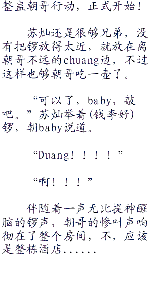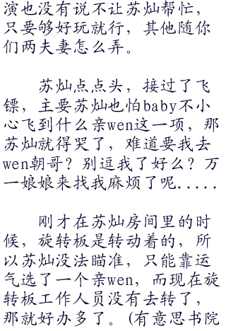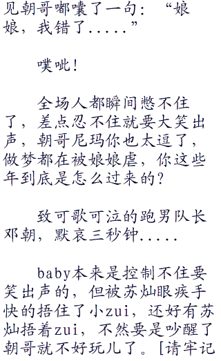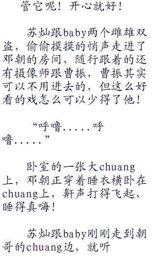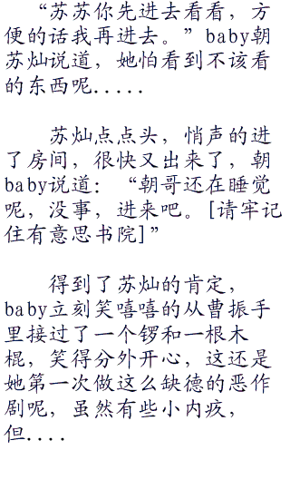 “苏苏,你说我们抽谁好呢?要不要抽朝哥?他昨晚可是宰了我们一顿呢,哼哼....”baby坏笑的说道,邓朝昨晚坑了苏灿一顿饭,baby作为苏灿的女朋友当然是要不乐意的!