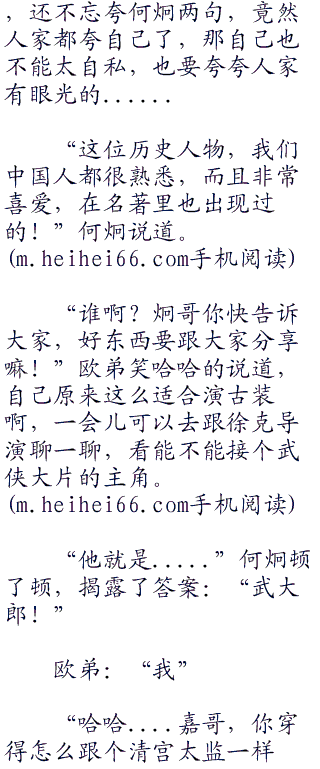 “欧弟,你打扮得很像一个历史伟人啊!”何炯对还在为自己的装扮洋洋得意的欧弟说道,还是一副惊呼的语气,顿时就把欧弟捧得上天了。