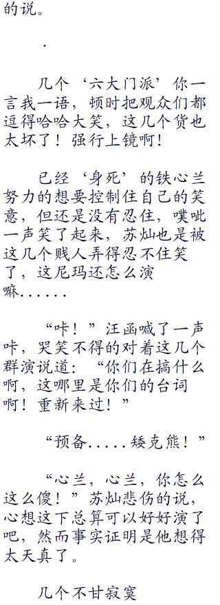 众人全部换上了古装服饰之后就显得有那么一些代入感了,不过除了苏灿、baby跟吴欣穿得还挺好看的以外,其他的几位,汪函只想说:这都是什么玩意儿......