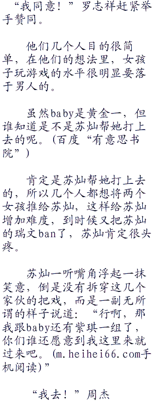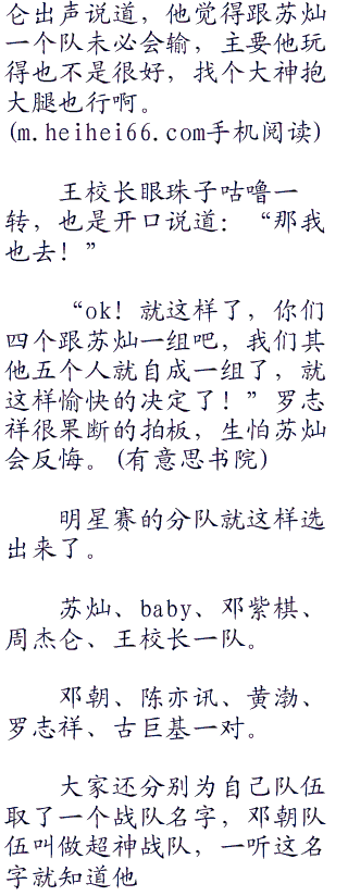 一旁的周杰仑也是很赞同地点头,说:“对啊,我就怕我跟苏灿不是一个队的,苏灿的瑞文我可是看了,太厉害了!”