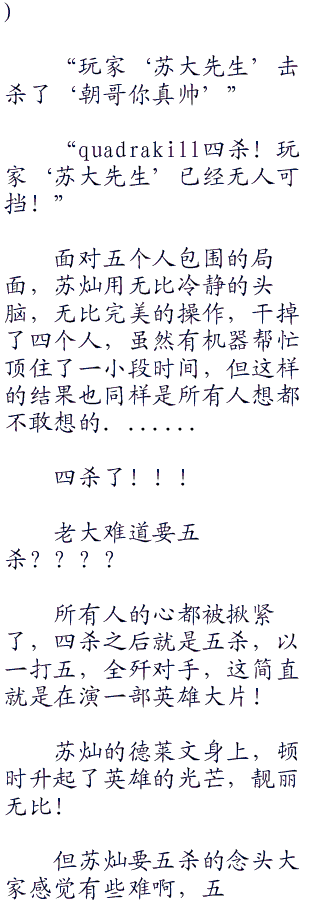 “triplekill三杀!玩家‘苏大先生’已经接近暴走!”