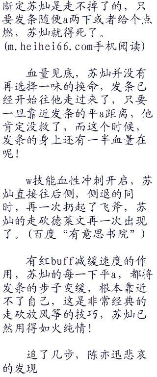 不过因为被红buff黏住,发条的步伐走得很缓慢,这期间又再次被苏灿砍中了两刀,血量立刻只剩下了一半。
