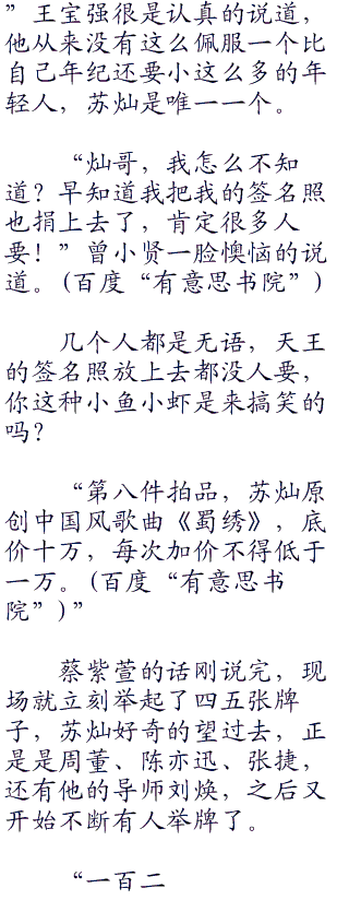 以为自己是谁?随便写点东西就像成为拍品?就算有人买估计也都是看在苏灿的面子上随便意思意思而已。