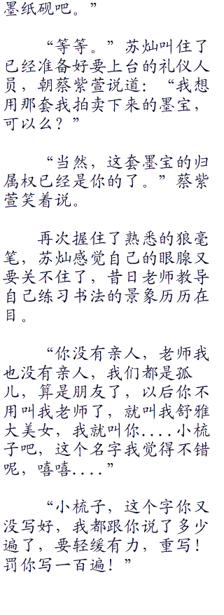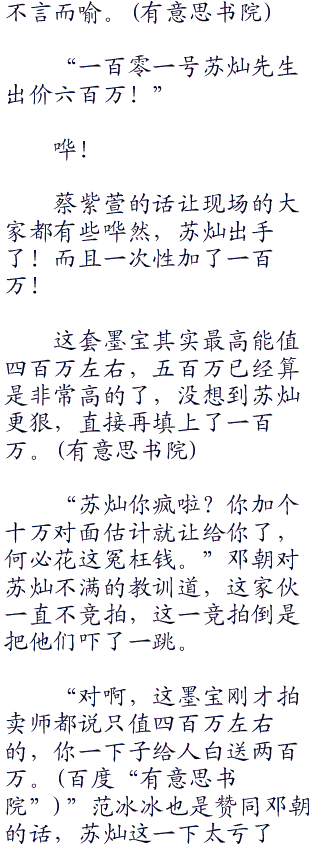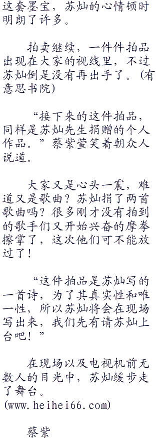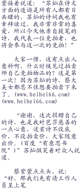 蔡紫萱刚要说出最后两个字的时候,她看见台下又有一个人举起了牌子,举牌的人她很熟悉,正是她很喜欢的明星苏灿!