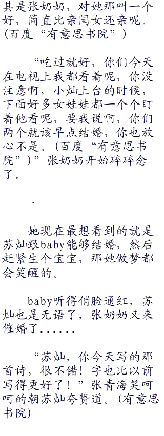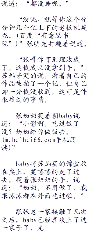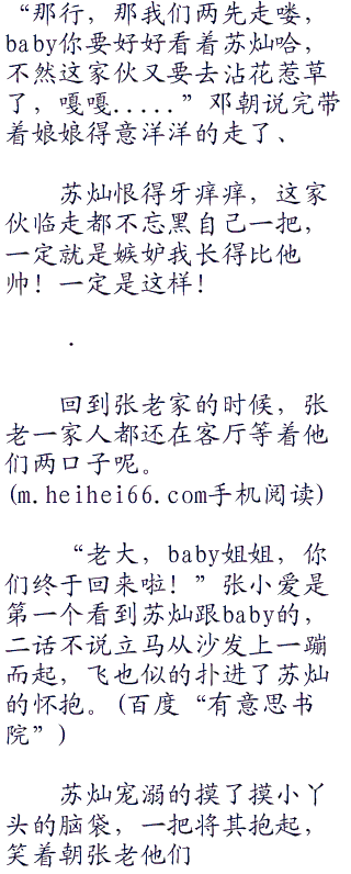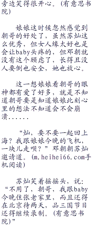 回到baby身边的苏灿讲事情的经过原原本本的交代了,引得baby大翻白眼,倒是邓朝跟娘娘两个人在