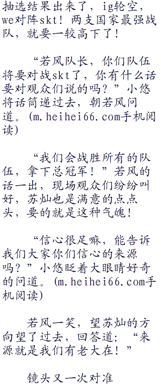 苏灿在看他的同时,faker也看到了苏灿,两人目光一对视,faker立马将目光望向别的地方,他感觉苏灿有一种气场,让他有些不敢与其直视。