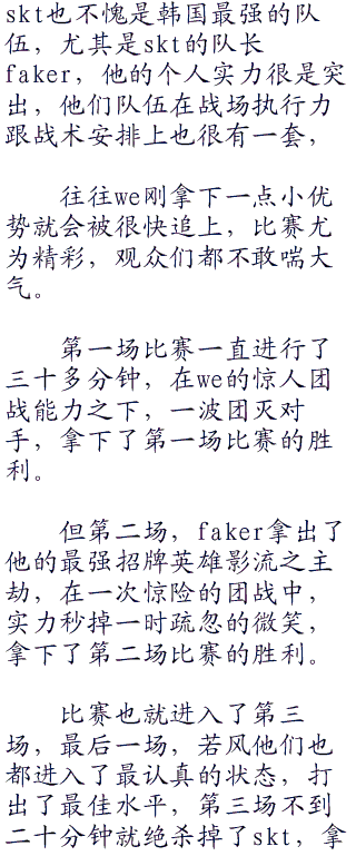 “这个人在游戏上的实力绝对在我之上,而且他还不是职业玩家,真是让人感到惭愧啊.....”faker心里苦笑地想道。