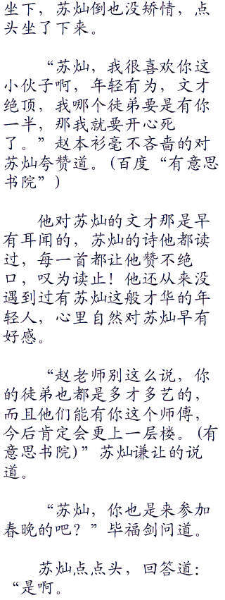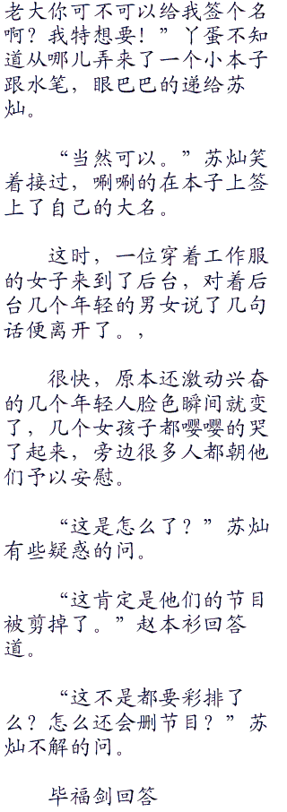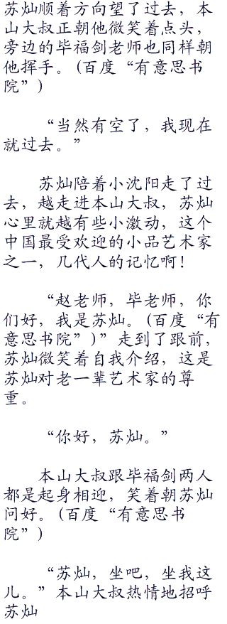 “当然,你是本山大叔的爱徒,我当然知道。”苏灿笑着解释道又接着问:“你找我是有什么事情么?”