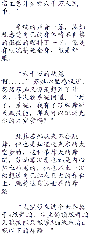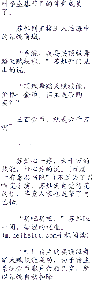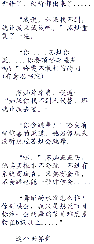 “舞蹈型的,李盛基的节目是一段舞蹈,李盛基在韩国艺人圈里是号称‘韩国舞王’,所以我们节目组才把他请过来的,谁想现在出了这档子事。”虽然很着急,但哈雯还是回答了苏灿的问题。