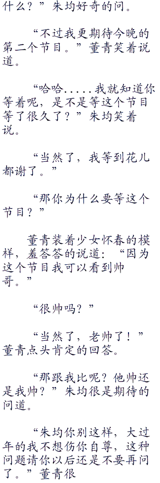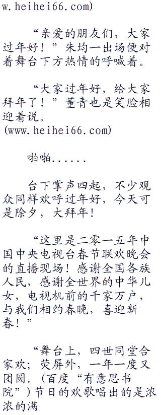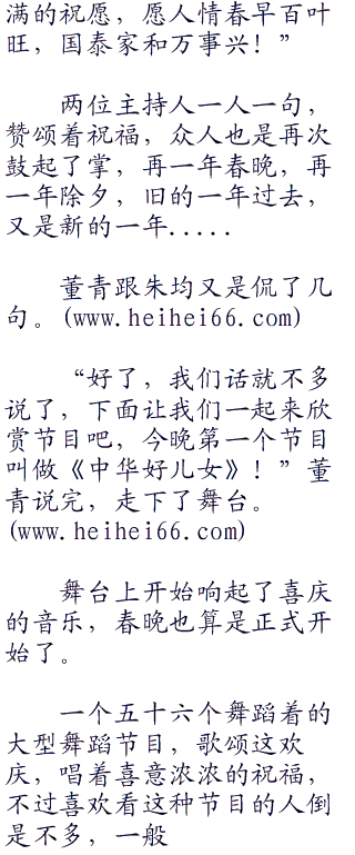 璀璨的灯光照耀着整个舞台,到处都张灯结彩,和谐而又喜庆的灯光将此刻的春晚现场照的如同白昼。