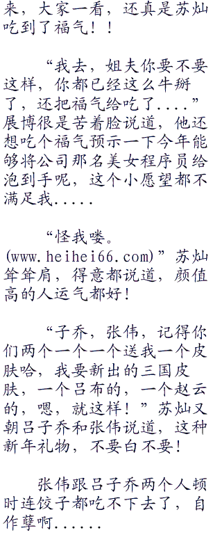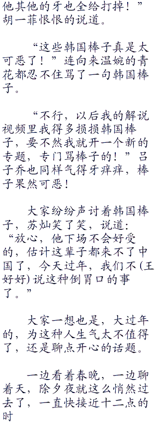 子乔关谷展博张伟他们倒是没有包饺子,他们有更重要的任务,剁猪肉.....所以他们也是不知道的。