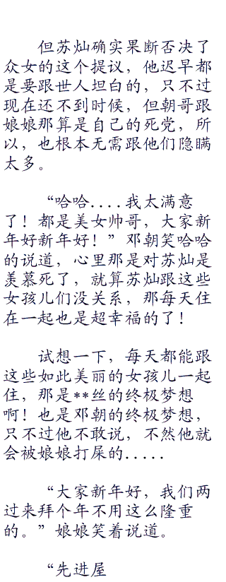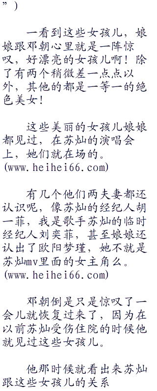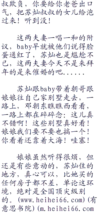 邓朝觉得这个主意太完美了“五五三”,以后儿子出生了,他就要对儿子说:你老爸总是被你苏灿叔