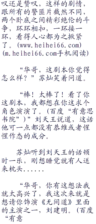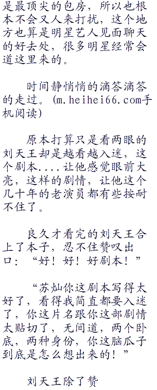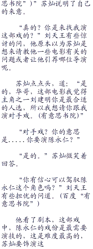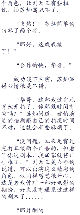 而且就算刘天王不是他要找的演员,那苏灿也会毫不犹豫的将剧本给他的,朋友之间,是