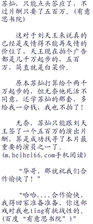 一方面是苏灿不想欠人情,人情债很难还的,另一方面更不想让刘天王吃亏,人家都推了广告来拍自己的戏,要是真不给人片酬,那怎么能说得过去。