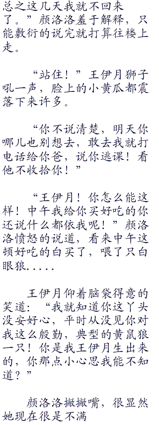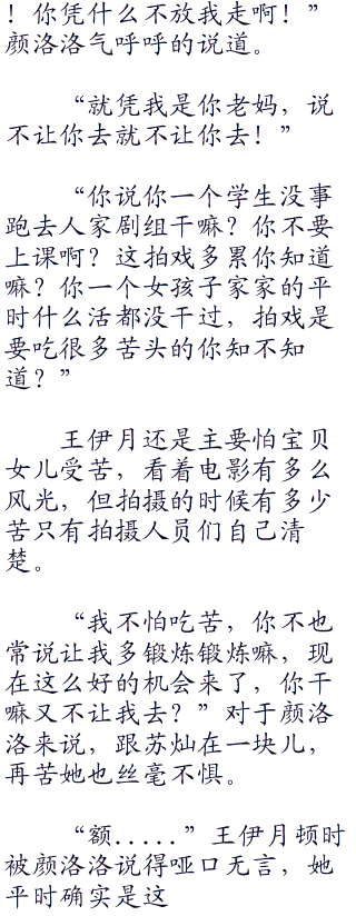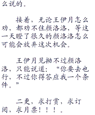 “洛洛,你去干嘛?”坐在客厅里的王伊月见女儿吃了饭就上楼,好奇的问。
