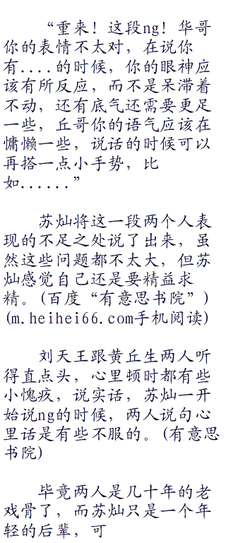 “cut!”苏灿忽然喊了一声停,刘天王跟黄丘生停下了对戏,将目光看向苏灿。