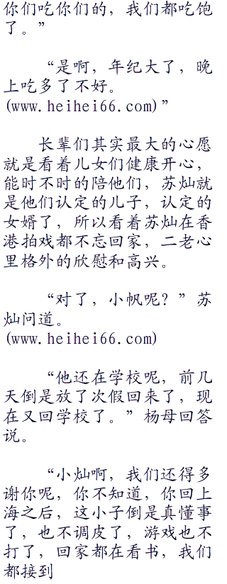 杨母瞪了她一眼,说道:“能吃是福,你看你瘦成什么样了,以后生宝宝都困难。”