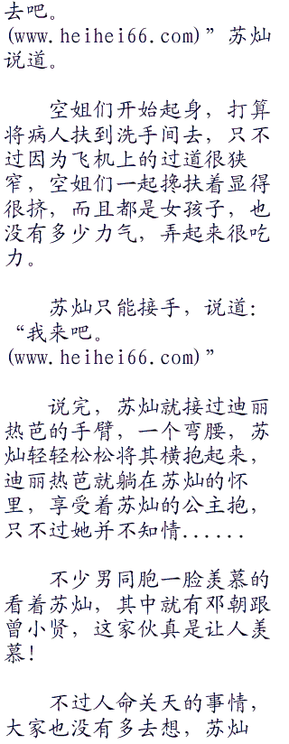 乘务长点头回答:“有,飞机上有洗手间,那儿很干净,而且没有人。”