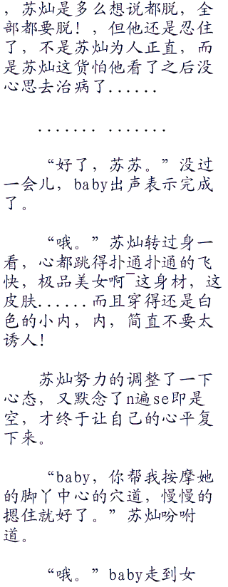 “真的可以治好嘛?那太好了,苏苏你快治好这个女孩儿吧!”baby有些惊喜的说道。