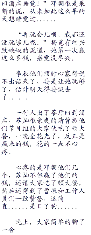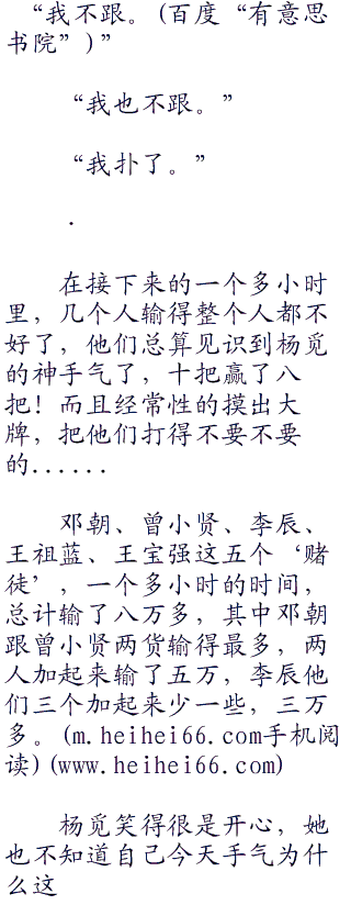 “yes!觅觅姐你太棒了!”baby兴奋地喊道,没想到觅觅姐第一把牌