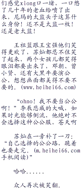 “哈哈....太监穿的衣服.....”王祖篮笑得那是贼开心,塞翁失马焉知非福!