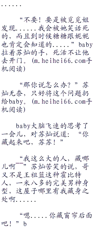 “呀!是觅觅姐来了,怎么办呀.....”baby慌张的说道,脸上的被苏灿挑逗起的红晕都还没有散去,这要是被杨觅看见苏灿在她房间里,那估计得笑话死她了。