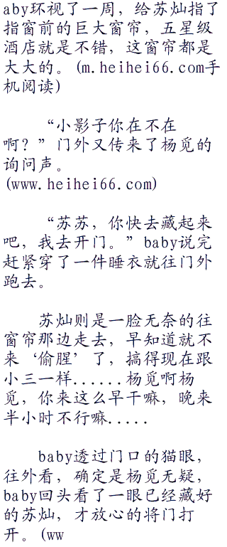 在baby的房间,苏灿愉快的跟着媳妇儿鸳鸯戏水,就在苏灿打算吃掉这只诱人的小媳妇儿的时候,门外忽然响起了敲门声......