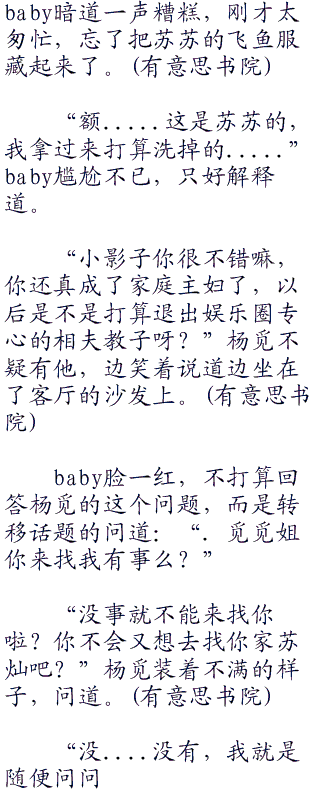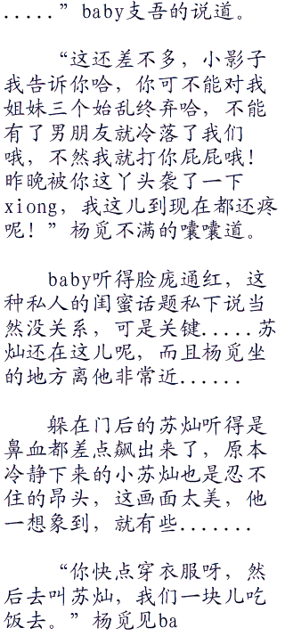 “一起洗吧,gogo!”苏灿不由分说的将身上的飞鱼服一扒,抱起baby就往浴室走去。