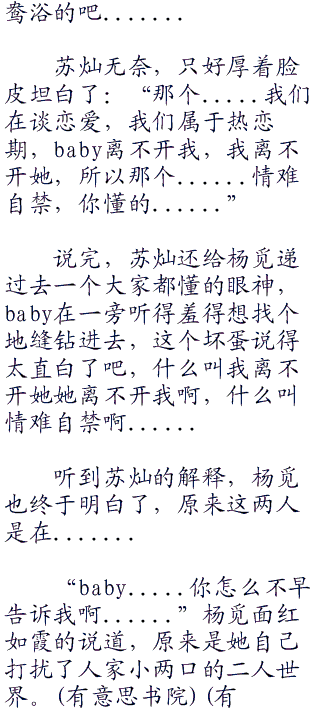 一道高分贝的尖叫声,响彻了整个屋子,苏灿怕被别人房间的人听见,只好出手将杨觅的小zui捂上,这么高分贝的女高音,只混影视圈真是可惜了.......