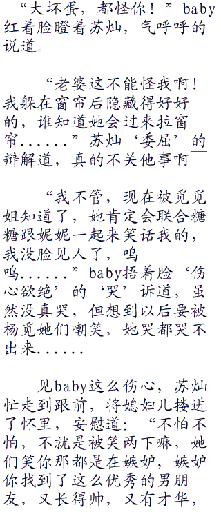 苏灿在窗帘里暗叹一声,老婆,不是为夫不帮你,而是实在没办法啊......