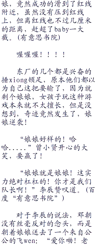 苏灿以为这一场必赢了,但让他始料未及的是,最后一棒出场的娘