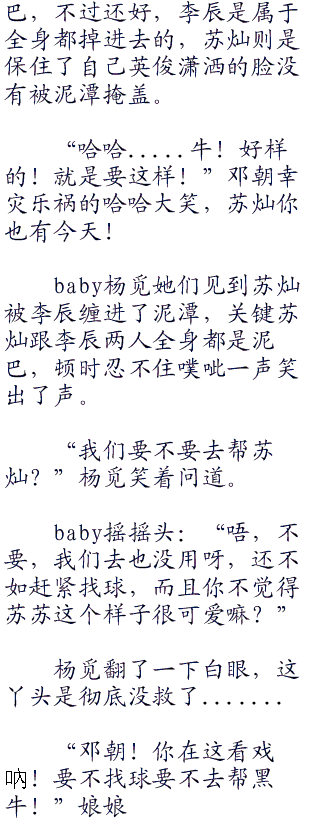 捡到白球,苏灿直接扔回了泥潭里,并且还使坏的踩了一脚,把球埋深点他们就不好找到了......