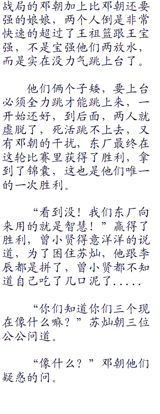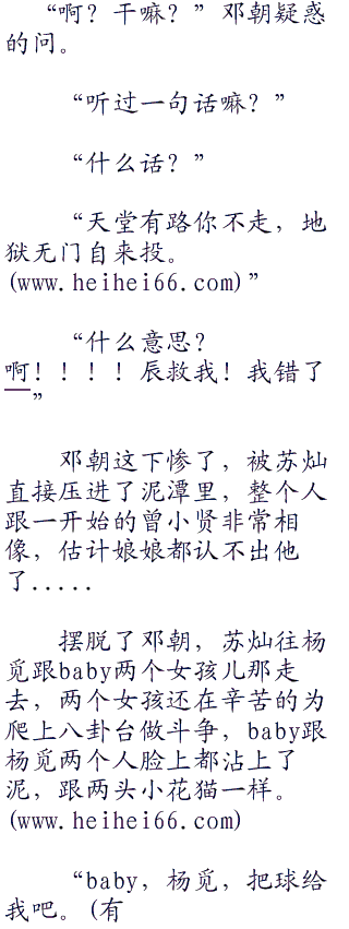 泥潭里开始出现了两道风格迥异的画面,其他人都在拼命的找球上台,邓朝跟李辰两个人则是抱着苏灿的腰跟腿坐在泥潭,死活不肯起来。