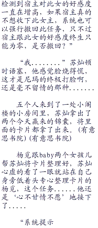“为什么?为什么会发布这样的任务!”苏灿朝着系统质问道,系统不可能无缘无故发布这样的任务吧,这太让他难以接受了。