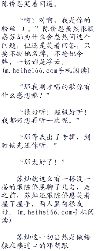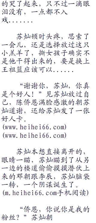 “你别撕我好不好,苏灿,我可是你的粉丝。”陈侨恩可怜兮兮的朝苏灿说道。