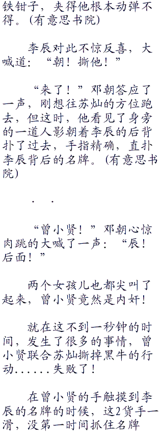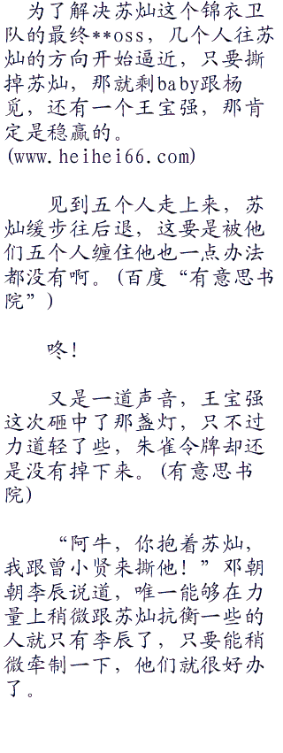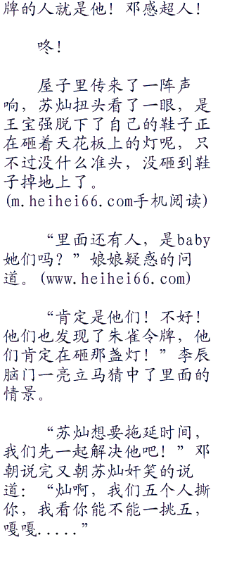 “我去,灿啊,你这个样子想干嘛?”邓朝眼睛很警惕的瞄了瞄四周,笑着说道:“埋伏的小朋友快出来吧,我看到你们了!”