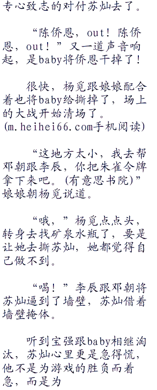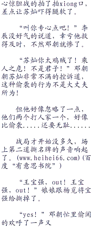苏灿想去抽身帮助宝强,但无奈大厅里空间不是很大,邓朝跟李辰这么一包,够苏灿活动的空间就更小了,实在没办法过去帮忙。