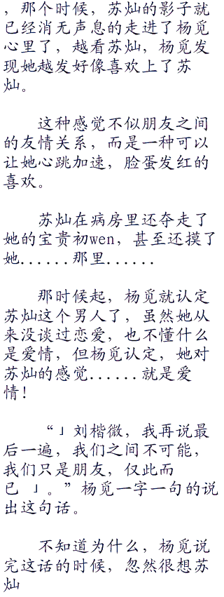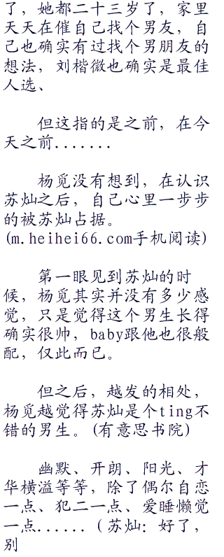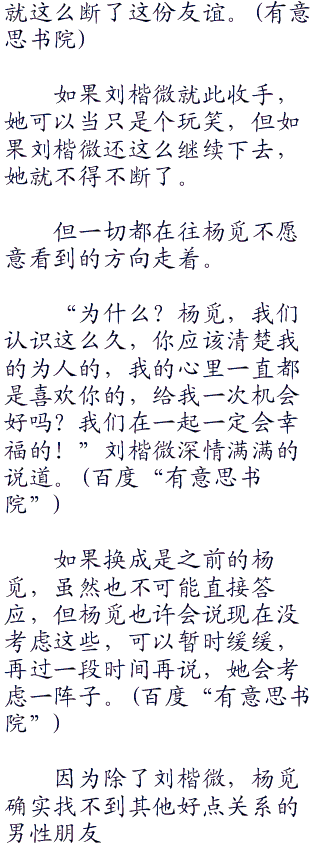 说句心里话,也认识一年了,杨觅对刘这个好朋友印象还是很不错的,是个挺不错的男性朋友,所以杨觅不想