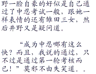 “叮!忍者版面——恭喜宿主成功完成了忍者职业二转任务第一环节,任务奖励:0技能点!任务完成率:!”