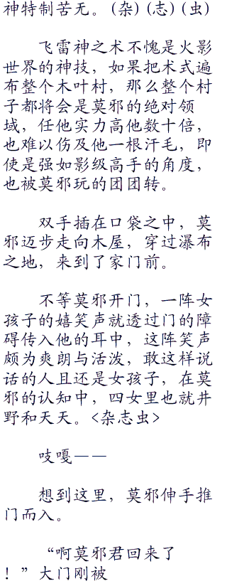 莫邪不可谓优秀的很啊,但他却是木叶的忍者,未来也将是木叶忍者村不可缺少的一笔财富,如若是其他忍者,也许森乃伊比喜早就对其重视甚至心升杀意了,不过是莫邪,他只会感觉到欣慰。