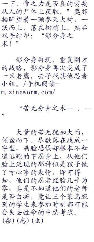 “不过,必须要确定一下,帝之力是否真的需要从人的尸体上获取。”莫邪抬眸望着一颗参天大树,一跃而上,落在树梢上,然后双手结印:“影分身之术!”