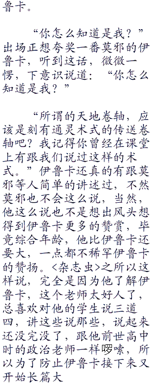 “所谓的天地卷轴,应该是刻有通灵术式的传送卷轴吧?我记得你曾经在课堂上有跟我们说过这样的术式。”伊鲁卡还真的有跟莫邪等人简单的讲述过,不然莫邪也不会这么说,当然,他这么说也不是想出风头想得到伊鲁卡更多的赞赏,毕竟综合年龄,他比伊鲁卡还要大,一点都不稀罕伊鲁卡的赞扬。之所以这样说,完全是因为他了解伊鲁卡,这个老师太好人了,总喜欢对他的学生说三道四,讲这些说那些,说起来还没完没了,跟他前世高中时的政治老师一样啰嗦,所以为了防止伊鲁卡接下来又开始长篇大道,莫邪首先说道。