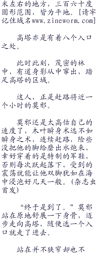 此时此刻,茂密的林中,有道身影从中窜出,踏足高塔的区域。
