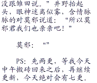 PS:先两更,等我今天中午搬砖回来之后,再继续更新,今天绝对会有七更。