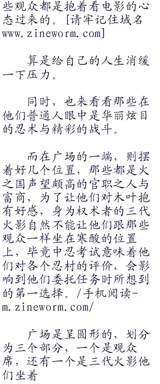 每天一度的中忍考试最后环节,亦是木叶重要的一个节日,这些观众都是抱着看电影的心态过来的。