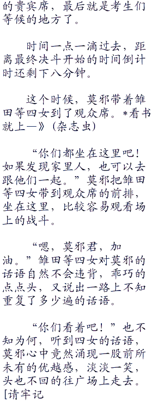 这个时候,莫邪带着雏田等四女到了观众席。
