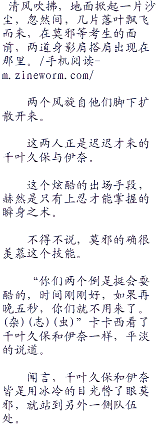 “你们两个倒是挺会耍酷的,时间刚刚好,如果再晚五秒,你们就不用来了。”卡卡西看了千叶久保和伊奈一样,平淡的说道。