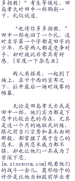 “请多指教!”考生等候处,田岛孝太对田中一郎鞠躬一下,礼仪说道。